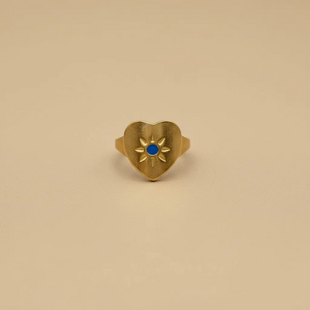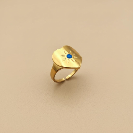 Gold Sun Shield Ring with Blue Enamel (Adjustable)