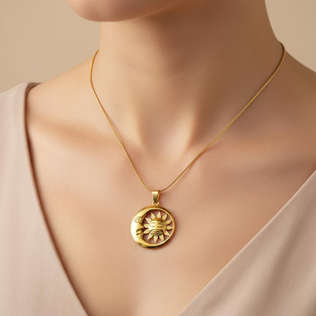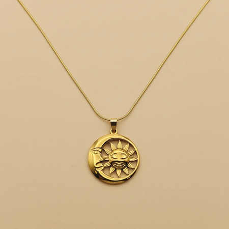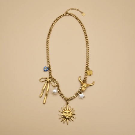 Gold Sun & Bull Charm Necklace – Statement Layered Chain