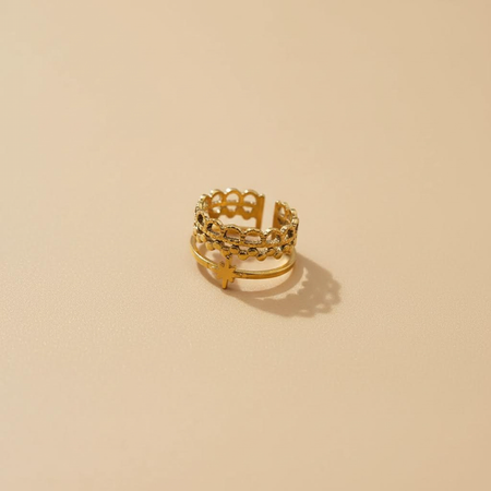 Gold Star Adjustable Ring – Textured Open Statement Design