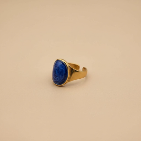 Gold Statement Ring with Deep Blue Marble Stone (Adjustable)