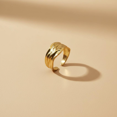 Gold Wave Adjustable Ring – Open Modern Design