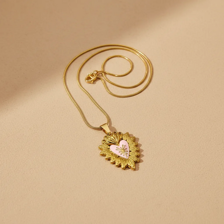 Sacred Heart Gold Necklace – Pink Detail