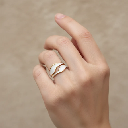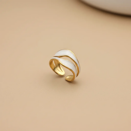 Gold Wave Ring with White Enamel (Adjustable)