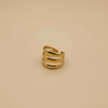 Minimal gold ring featuring a bold triple-band design with smooth rounded curves and a modern open structure.