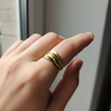 Modern gold adjustable ring featuring a smooth flowing wave texture across the band. The sculpted surface creates a bold yet minimal look while remaining lightweight and comfortable to wear.