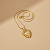 Elegant gold sacred heart necklace featuring a soft pink enamel heart centerpiece. The detailed textured frame adds a vintage-inspired look while keeping a modern, minimal feel. Perfect for layering or wearing as a statement piece.